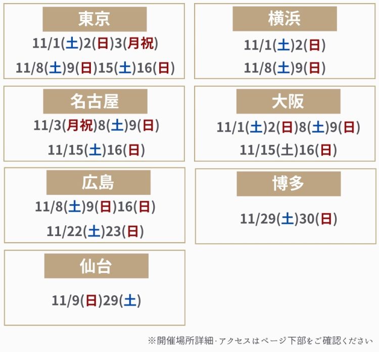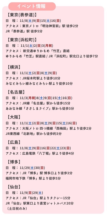 ※名古屋11/9(日)15(土)16(日)は、診断コンテンツ無し(ドレス試着&相談会のみ実施)