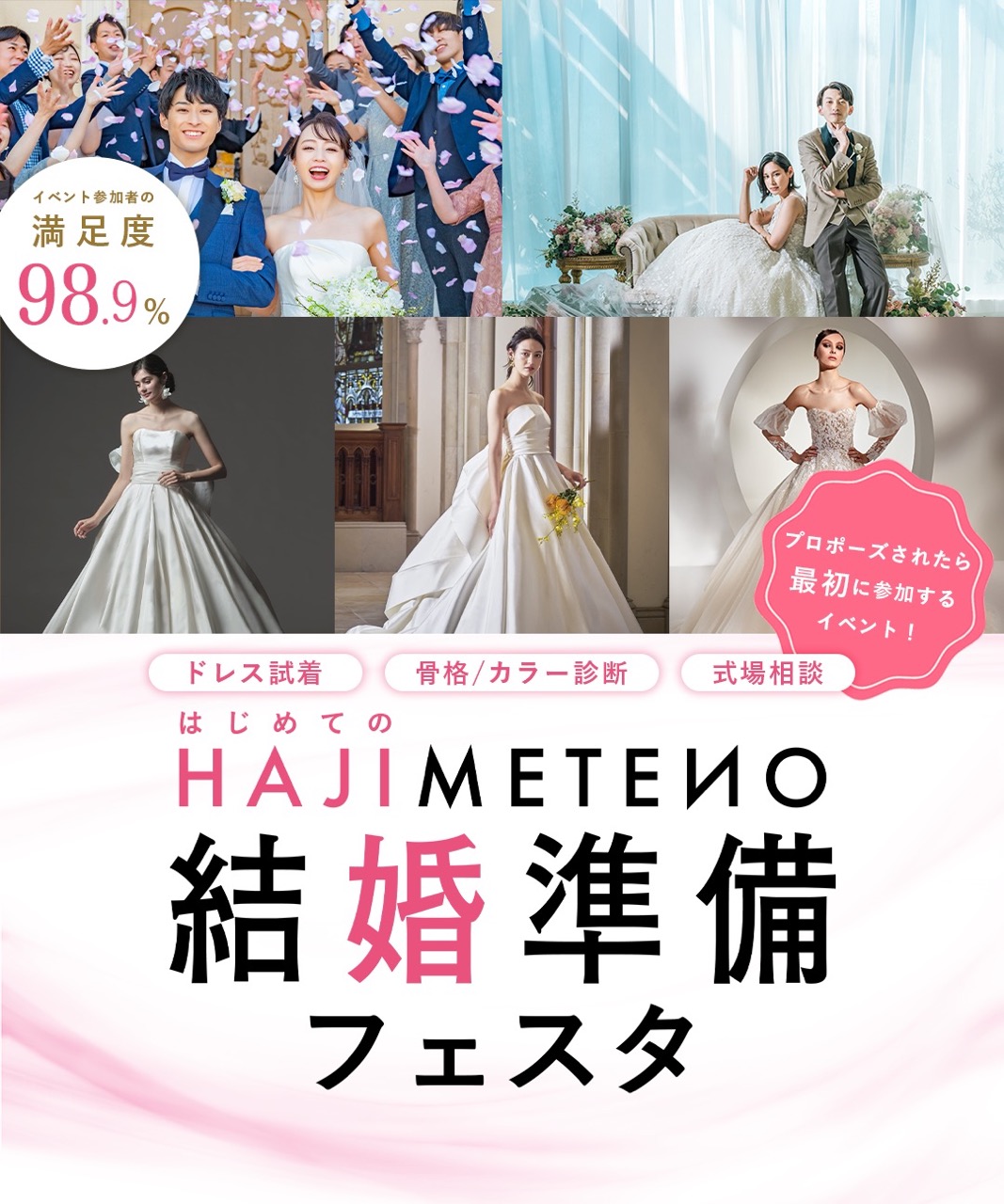 キャンペーン はじめての結婚準備フェスタで式場見学&ご成約で 結婚式当日の衣裳が最大55%(670,000円)OFFに! 類似した式場紹介カウンターや フェスタと比べても高還元率のフェスタ! 同じ式場で同じ結婚式を開催しても、 はじめての結婚準備からの予約だと 約80万円お得に叶う♡ イベント参加者2,000人突破! 5つの安心ポイントは? プロポーズされた花嫁さまが 最初に参加するイベント 『はじめての結婚準備フェスタ ~花嫁体験からはじまる結婚式場探し~』 参加無料で花嫁体験をしながら式場相談が叶う、 ウエディングイベントの開催が決定♡ 東京・横浜・名古屋・大阪・京都 … 続きを読む 【参加無料】アントニオリーヴァなどの人気ブランドドレス試着体験もできる!『はじめての結婚準備フェスタ ~花嫁体験からはじまる結婚式場探し~』東京/横浜/名古屋/大阪/広島/仙台/博多の7エリアで同時開催♡