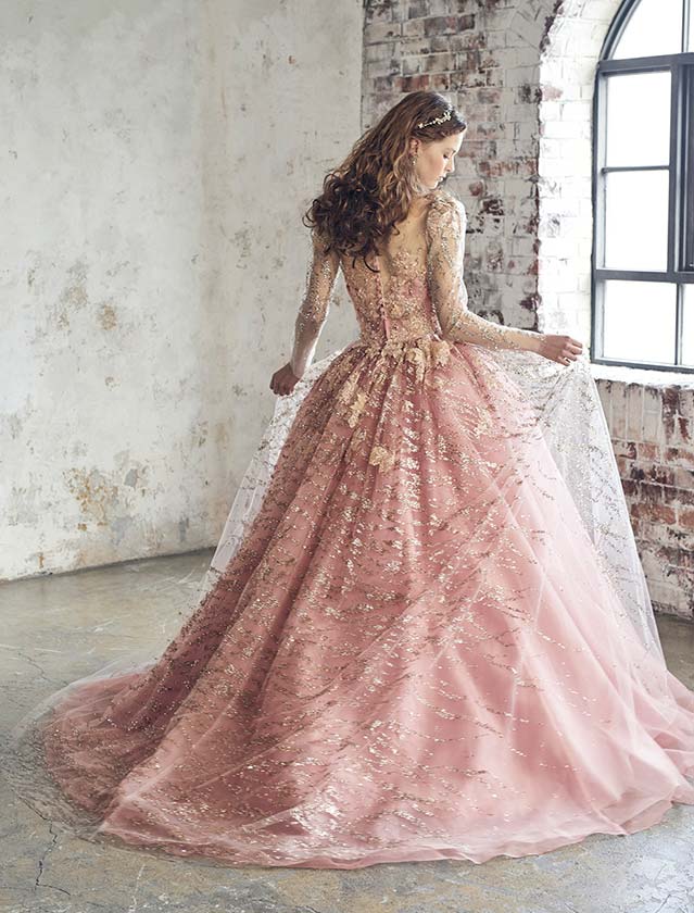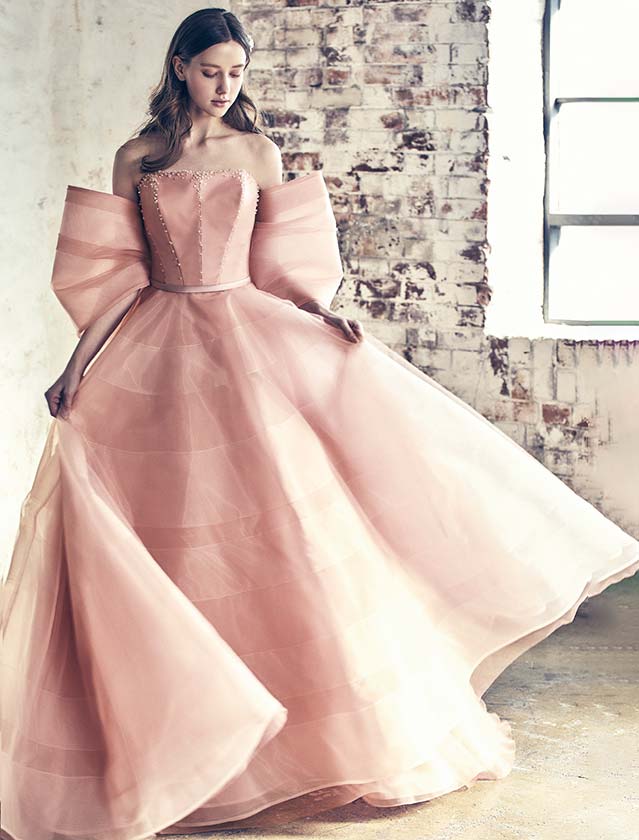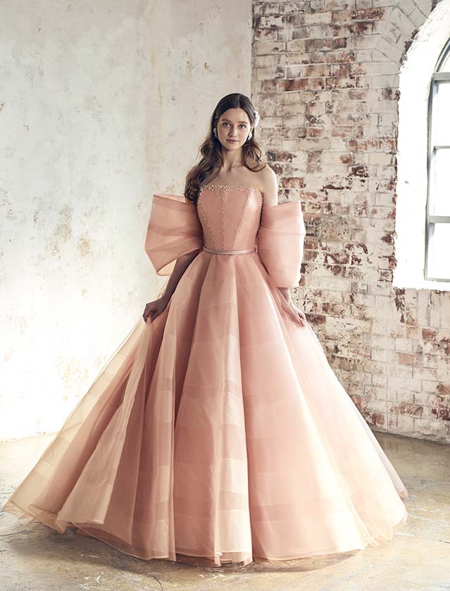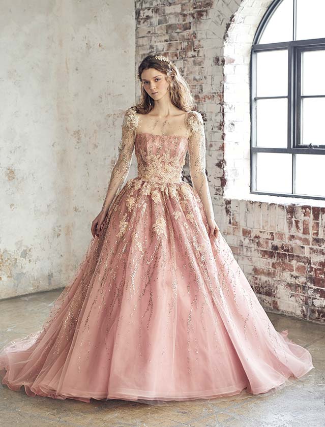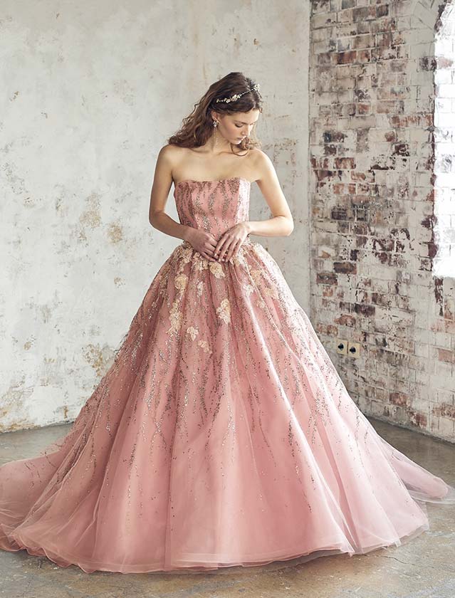 優美にきらめく、クラシカルピンクのカラードレス♡華やかでありながら、繊細なクラシカルさが香る美しい一着です。