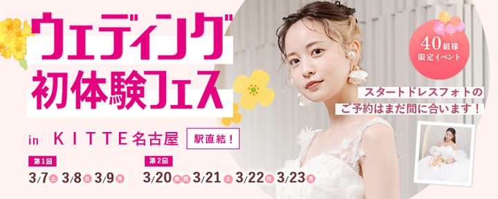 01. お客様情報の入力(必須) お名前 / ふりがな ※名前は必須項目です お相手様のお名前 / ふりがな メールアドレス ※メールアドレスは必須項目です 電話番号 ※電話番号は必須項目です 02. 参加希望日時(必須) 参加希望日程 選択してください2月23日 (月祝)2月24日 (火)2月25日 (水)2月26日 (木)【追加枠】2月27日 (金)【追加枠】2月28日 (土)【特別枠】3月1日 (日)【特別枠】3月2日 (月)3月3日 (火)3月4日 (水)3月5日 (木)【追加枠】3月6日 (金)【追加枠】3月7日 (土)3月8日 (日)3月9日 (月)3月10日 (火)3月11日 (水)3月12日 (木)【追加枠】3月13日 (金)【追加枠】3月14日 (土)【特別枠】3月15日 (日)【特別枠】3月16日 (月)3月17日 (火)3月18日 (水)3月19日 (木)【追加枠】3月20日 (祝金)【追加枠】3月21日 (土)3月22日 (日)3月23日 (月) 参加希望時間 選択してください10:0011:3014:0015:3018:00 当日のご参加人数 選択してくださいお一人でお相手様とお二人でお子様と一緒にご友人やご家族と一緒に未定 検討状況を教えて下さい。 選択してください①式場見学先を探している②式場見学済みだが他にも見学したい③婚約済み。まだ何も決めていない④婚約に向けて2人で情報収集中⑤フォト/前撮りのみ相談したい⑥オリジナルドレス購入希望(試着1000円) \スタートドレスフォトの事前予約枠 ▲残り3組様!/