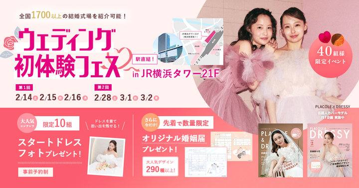01. お客様情報の入力(必須) お名前 / ふりがな ※名前は必須項目です お相手様のお名前 / ふりがな メールアドレス ※メールアドレスは必須項目です 電話番号 ※電話番号は必須項目です 02. 参加希望日時(必須) 参加希望日程を教えてね! 選択してください2月2日 (月)2月3日 (火)2月4日 (水)2月5日 (木)【追加枠】2月6日 (金)【追加枠】2月7日 (土)【特別枠】2月8日 (日)【特別枠】2月9日 (月)2月10日 (火)2月11日 (水)2月12日 (木)2月13日 (金)2月14日 (土)2月15日 (日)2月16日 (月)2月17日 (火)2月18日 (水)2月19日 (木)【追加枠】2月20日 (金)【追加枠】2月21日 (土)【特別枠】2月22日 (日)【特別枠】2月23日 (月祝)【特別枠】2月24日 (火)2月25日 (水)2月26日 (木)2月27日 (金)2月28日 (土)3月1日 (日)3月2日 (月) 参加希望時間を教えてね! 選択してください10:0011:0012:0013:0015:0016:0017:0018:00 当日のご参加人数 選択してくださいお一人でお相手様とお二人でお子様と一緒にご友人やご家族と一緒に未定 検討状況を教えて下さい。 選択してください①式場見学済みだが他にも見学したい②式場見学先を探している③婚約済み。まだ何も決めていない④婚約に向けて2人で情報収集中⑤フォト/前撮りのみ相談したい⑥式場未決(ドレス試着/購入希望)⑦式場既決(ドレス購入希望) \スタートドレスフォトの事前予約枠 ▲残り3組様!/