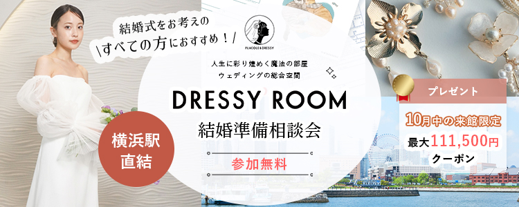 どの相談/体験をご希望されますか? 結婚式場相談ドレス試着/相談購入フォト撮影体験アクセサリー/アイテム相談購入 式場相談の後に体験はご希望されますか? 選択してください選択してくださいスタートドレスフォトスタートリングドレス/アクセサリー相談希望しない (体験は相談会にて結婚式場のブライダルフェアのご予約いただいた方の無料特典となります) PLACOLEWEDDINGのウェディング診断は登録済みですか? 選択してください選択してくださいはいいいえ ドレシーオンラインに試着したいドレスはありますか? DRSSY ONLINEhttps://weddingdress.pla-cole.wedding/ 選択してください選択してくださいはいサイトは見ていない 品番を教えてください お客様の身長を教えてください 普段のお洋服のサイズを教えてください 選択してください選択してください5号7号9号11号13号15号以上 ドレスのご予算は? 選択してください選択してください〜49,00049,000〜100,000100,000〜 どんなドレスがお好みですか? お客様の身長を教えてください 普段のお洋服のサイズを教えてください 選択してください選択してください5号7号9号11号13号15号以上 どちらのフォト撮影体験をご希望ですか?(有料になります) ドレス試着&セルフフォト撮影体験会(10,300円) DRESSY ROOMのプチスタジオで、試着したドレス姿も綺麗に撮影して思い出に残せます! ウェディングフォトプラン(横浜ロケ)(59,800円~) PLACOLE&DRESSYが厳選したフォトグラファーによるフォトプラン。 DRESSY ONLINEで販売中のドレスやアクセサリーを着て、ロケーションフォトが叶います! どちらをご希望ですか? ヘッドアクセサリーイヤリング/ピアスネックレス指輪ブーケ結婚証明書 ご来店希望日 選択してください選択して下さい ご希望時間 選択してください-9:00〜12:00〜14:00〜16:00〜18:00〜 その他私たちがお力になれる事はございますか? お客様情報の入力(必須) お名前 ※名前は必須項目です お相手様 ※お相手様は必須項目です メールアドレス ※メールアドレスは必須項目です 電話番号 ※11桁の電話番号を入力してください \DRESSY ROOM横浜店にいく!/