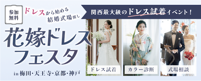 01. お客様情報の入力(必須) お名前 ※名前は必須項目です ふりがな ※ふりがなは必須項目です メールアドレス ※メールアドレスは必須項目です 電話番号 ※電話番号は必須項目です 02. フェスタのご予定について フェスタ参加日を教えてね! 選択してください【梅田】3/7(土) 10:30【梅田】3/7(土) 11:00×満枠【梅田】3/7(土) 11:30【梅田】3/7(土) 12:00【梅田】3/7(土) 12:30【梅田】3/7(土) 13:00【梅田】3/7(土) 13:30【梅田】3/7(土) 14:00【梅田】3/7(土) 14:30【梅田】3/7(土) 15:00【梅田】3/7(土) 15:30【梅田】3/7(土) 16:00×満枠【京都河原町】 3/15(日) 10:30【京都河原町】 3/15(日) 11:30【京都河原町】 3/15(日) 12:30【京都河原町】 3/15(日) 13:30【京都河原町】 3/15(日) 14:30【京都河原町】 3/15(日) 15:30【京都河原町】 3/15(日) 16:30×満枠【神戸】3/20(金祝) 10:30【神戸】3/20(金祝) 11:30×満枠【神戸】3/20(金祝) 12:30【神戸】3/20(金祝) 13:30【神戸】3/20(金祝) 14:30【神戸】3/20(金祝) 15:30×満枠【神戸】3/20(金祝) 16:30×満枠【天王寺】 3/22(日) 10:30【天王寺】 3/22(日) 11:30【天王寺】 3/22(日) 12:30【天王寺】 3/22(日) 13:30【天王寺】 3/22(日) 14:30【天王寺】 3/22(日) 15:30【天王寺】 3/22(日) 16:30×満枠【梅田】3/28(土) 10:30【梅田】3/28(土) 11:00×満枠【梅田】3/28(土) 11:30【梅田】3/28(土) 12:00【梅田】3/28(土) 12:30【梅田】3/28(土) 13:00【梅田】3/28(土) 13:30【梅田】3/28(土) 14:00【梅田】3/28(土) 14:30【梅田】3/28(土) 15:00【梅田】3/28(土) 15:30【梅田】3/28(土) 16:00×満枠【京都河原町】4/4(土) 10:30【京都河原町】4/4(土) 11:30【京都河原町】4/4(土) 12:30【京都河原町】4/4(土) 13:30【京都河原町】4/4(土) 14:30【京都河原町】4/4(土) 15:30【京都河原町】4/4(土) 16:30 ×満枠【梅田】4/5(日) 11:30【梅田】4/5(日) 12:30【梅田】4/5(日) 14:30【梅田】4/5(日) 16:30×満席【神戸】4/12(日) 10:30【神戸】4/12(日) 11:30【神戸】4/12(日) 12:30【神戸】4/12(日) 13:30【神戸】4/12(日) 14:30【神戸】4/12(日) 15:30【神戸】4/12(日) 16:30×満枠【天王寺】4/18(土) 10:30【天王寺】4/18(土) 11:30【天王寺】4/18(土) 12:30【天王寺】4/18(土) 13:30【天王寺】4/18(土) 14:30【天王寺】4/18(土) 15:30【天王寺】4/18(土) 16:30×満枠 検討状況を教えて下さい。 選択してください①式場決定済み②式場見学済みだが他も見たい③式場見学先を探している④婚約済み。まだ何も決めていない⑤婚約に向けて2人で情報収集中⑥婚約の予定はない どちらがご希望ですか?※先着順 ドレス試着体験和装試着体験ウエディングメニュー試食(京都河原町・神戸のみ) おふたりのイメージに近いものをお選びください。(複数選択可) 少人数婚(〜10名)少人数婚(10〜30名)披露宴(30〜60名)披露宴(60〜100名)披露宴(100名〜)フォトウェディングリゾートウェディング未定 結婚式の検討時期はいつですか?(複数回答可) 半年以内1年以内1年半以内2年以内未定 \花嫁ドレスフェスタに行く/