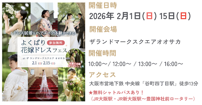 01. お客様情報の入力(必須) お名前 ※名前は必須項目です ふりがな ※ふりがなは必須項目です メールアドレス ※メールアドレスは必須項目です 電話番号 ※電話番号は必須項目です 02. フェスのご予定について フェス参加日時を教えてね! 選択してください2月1日(日) 10:00〜2月1日(日) 12:00〜2月1日(日) 13:00〜2月1日(日) 16:00〜2月15日(日) 10:00〜2月15日(日) 12:00〜2月15日(日) 13:00〜2月15日(日) 16:00〜 フェス参加希望コンテンツを教えてね! ドレス試着和装試着前撮り体験ヘアメイク体験スタイル診断結婚式相談 検討状況を教えて下さい。 選択してください①式場見学先を探している②前撮り+結婚式を検討中③フォトウェディングを検討中④婚約済み。まだ何も決めていない⑤婚約に向けて2人で情報収集中 \よくばり花嫁ドレスフェスに行く/
