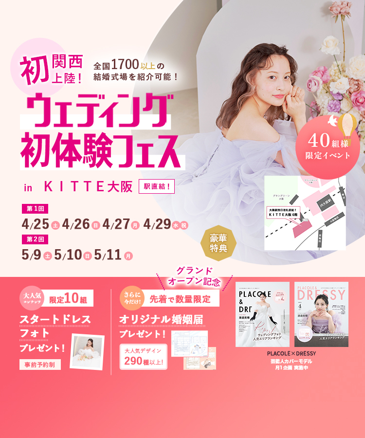 【3/14(土),15(日),16(月)限定!】関西初上陸!<大阪駅直結>結婚式場相談やスタートドレスフォトもできちゃう♡ウェディング初体験フェス in 大阪⚐