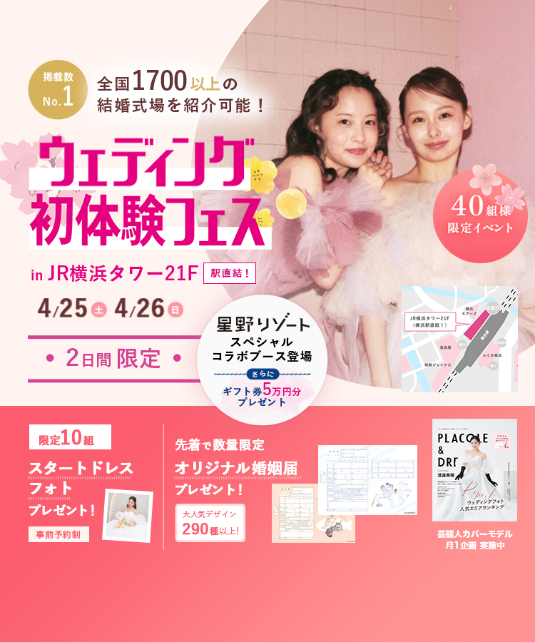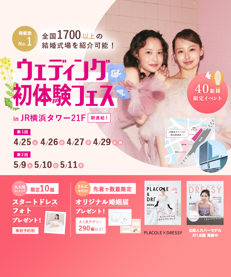 【3/14(土),15(日),16(月)限定!】豪華特典つき!<横浜駅直結>結婚式場相談やスタートドレスフォトもできちゃう♡ウェディング初体験フェス in 横浜⚐