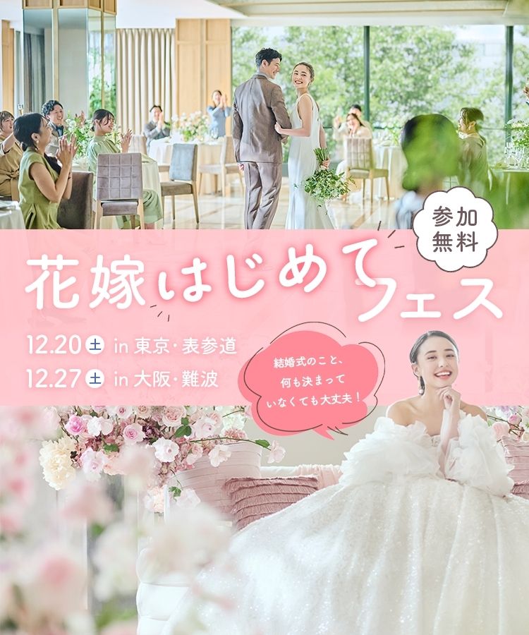 【東京】12/20(土)【大阪】12/27(土)開催♡ドレス試着や骨格診断の体験も!『花嫁はじめてフェス』で式場探しをはじめませんか?