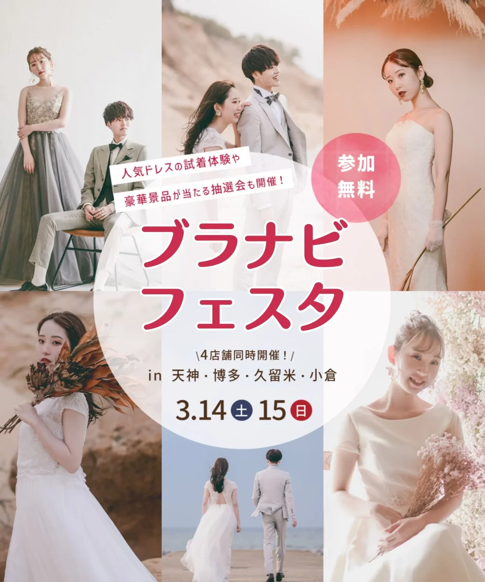 【3/14(土)15(日)限定開催】福岡九州エリア利用者No.1「ブラナビ」主催!エリア最大級『ブラナビフェスタ』の開催が決定⚐ ドレス試着や式場相談もできる♡