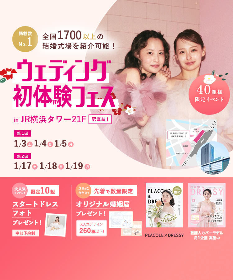 【1/3(土),4(日),5(月)限定!】豪華特典つき!<横浜駅直結>結婚式場相談やスタートドレスフォトもできちゃう♡ウェディング初体験フェス in 横浜⚐