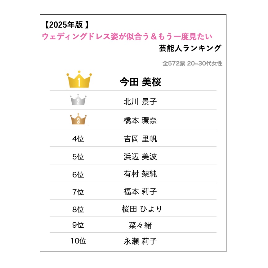 【2025年版】ウェディングドレス姿が似合う&もう一度見たい芸能人ランキング