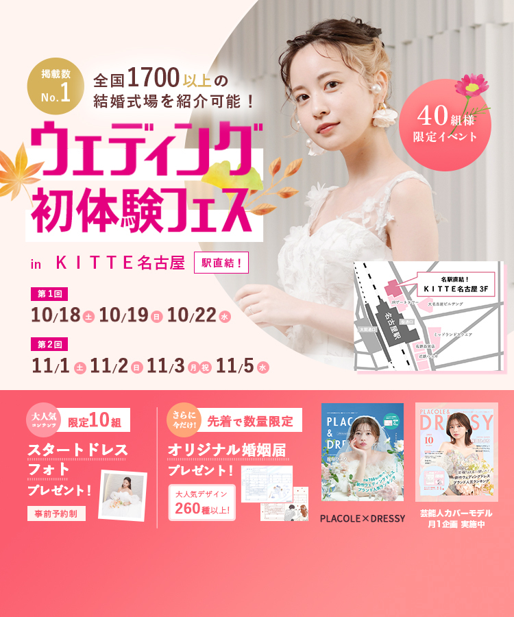 【話題の特別体験特典もあり!】来場1万人突破の話題イベント!名駅直結「ウェディング初体験フェス in KITTE名古屋」式場相談&豪華特典も!