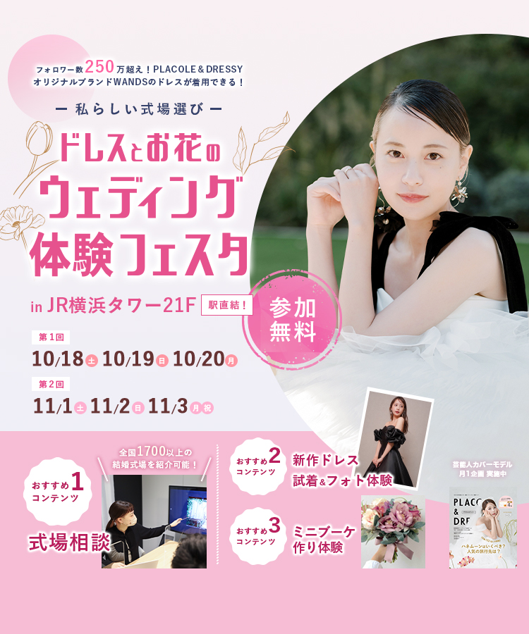 【10/18(土),19(日),20(月)限定!】~私らしい式場選び~ ドレスとお花のウェディング体験フェスタ in 横浜⚐