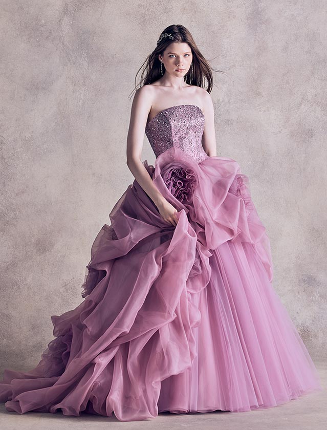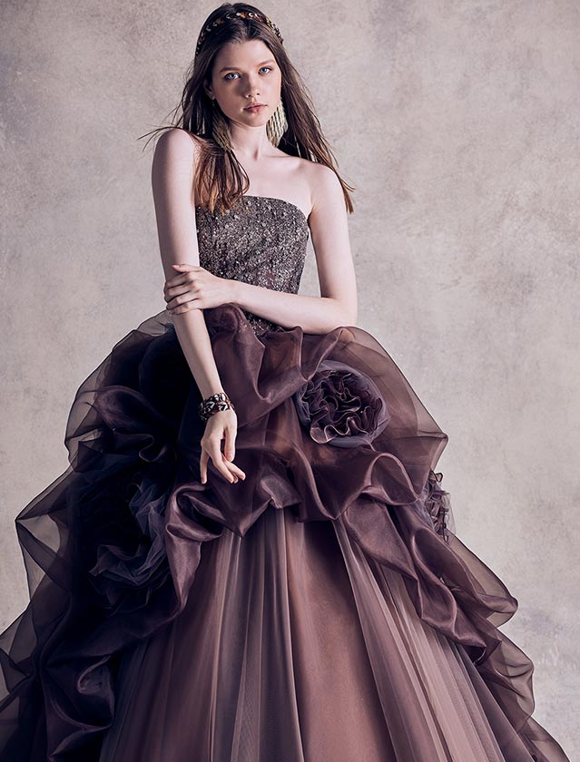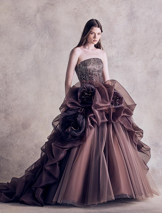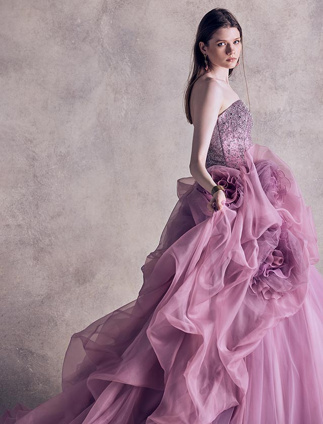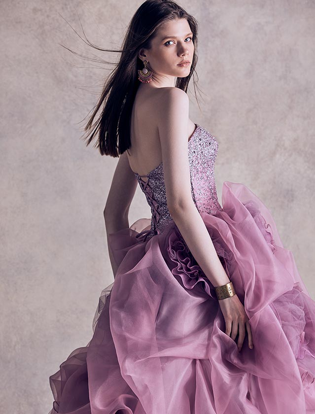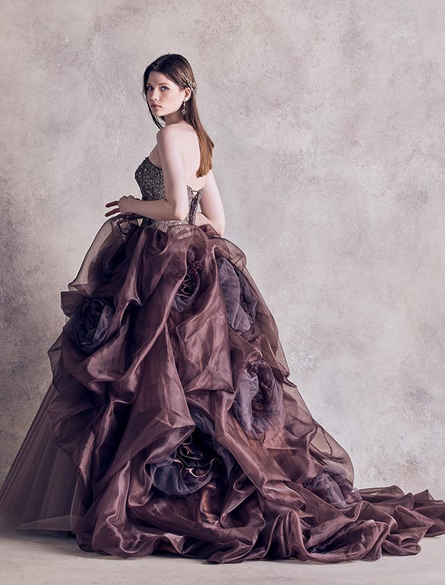 360度どこから見てもドラマティックな存在感を放つ、華やぎのドレスです。