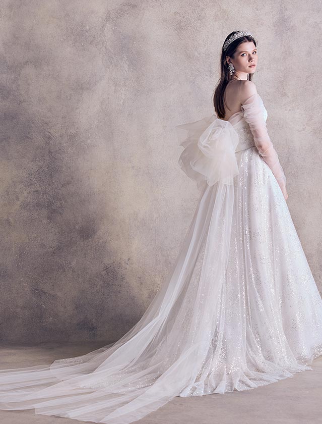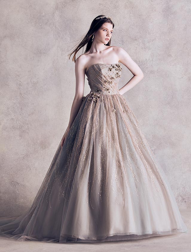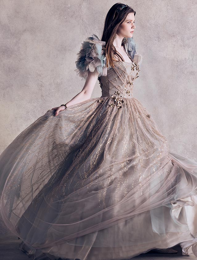繊細な耀きに合わせて流れ、魔法のように空気を変える一着です。