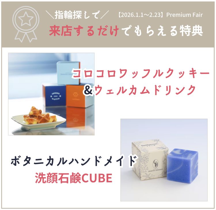 ※初めてのご来店で、アンケート記入とブライダルリングを試着頂いた方に限ります。