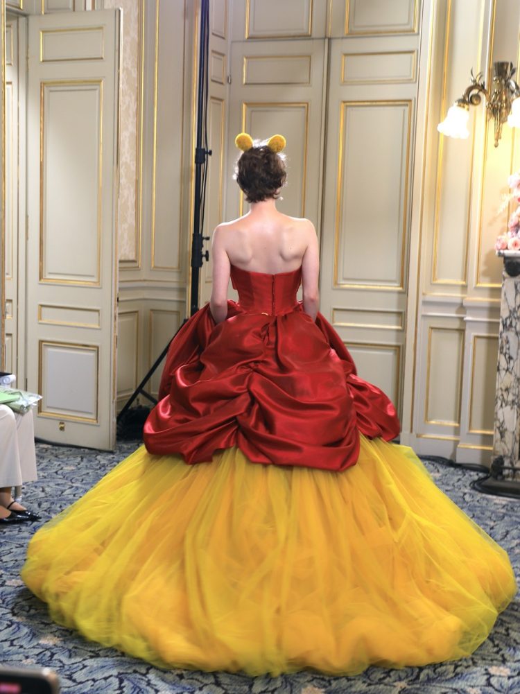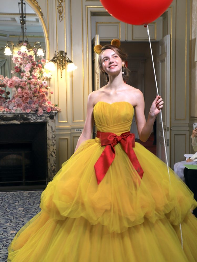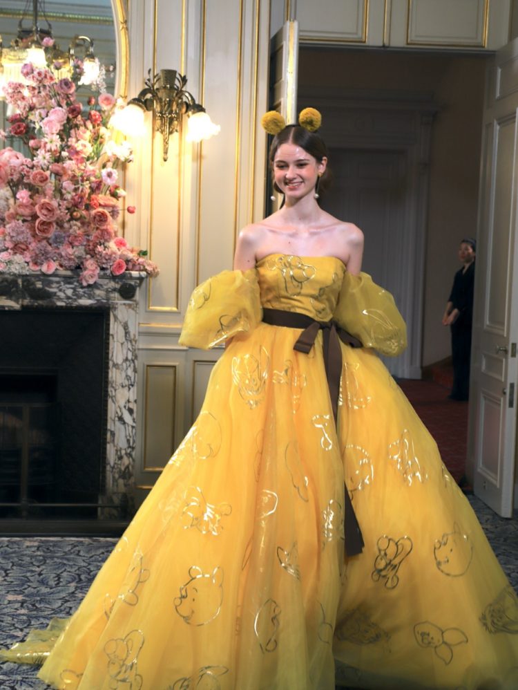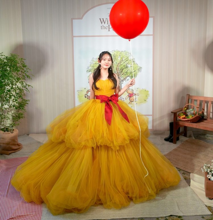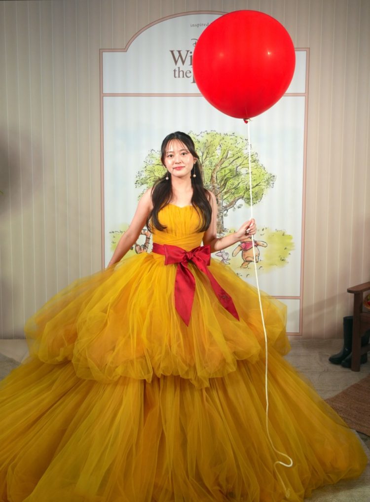 プーさんのまあるいフォルムが表現されたチュールのイエローカラードレスは動くたびにふわふわとして可愛らしいシルエットをしていました。
