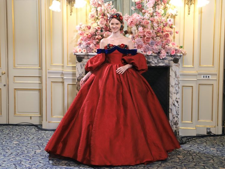 白雪姫にインスパイアされたドレスは、トレンド感も抑えたパフスリーブのデザイン。