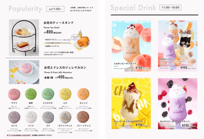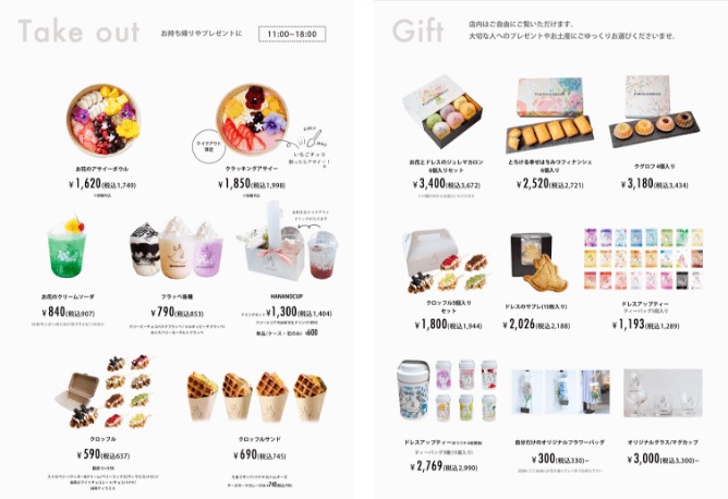 ハニーワッフルやマカロンフラッペ、クロッフル、お花のティーカクテルといった、人気メニューをお持ち帰りいただくことができます。
