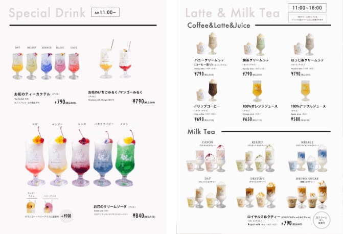 ラテメニューと、オリジナル紅茶をアレンジしたミルクティーやドリンク。