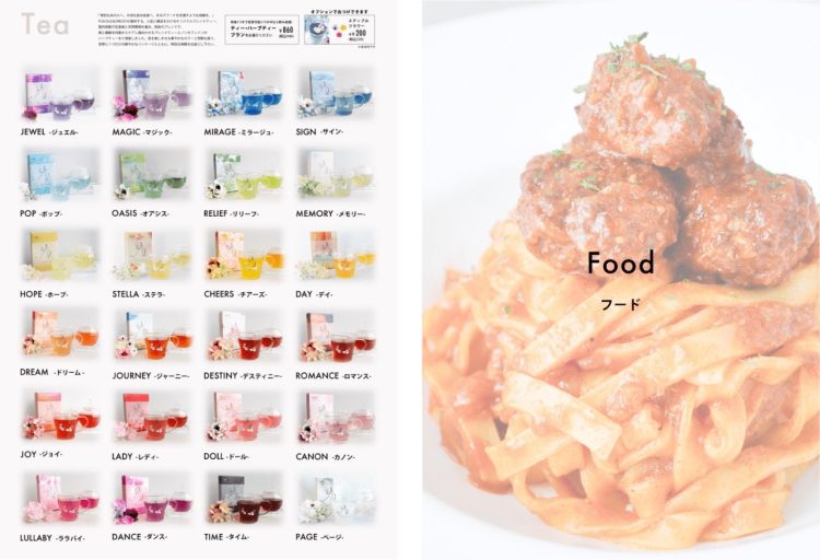 PLACOLE&DRESSYが提供する、人生に魔法をかけるオリジナルで、美と健康を内面からケアし煌めかせるブレンドティーとノンカフェインのハーブティーをご用意。