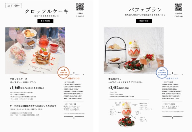 お二人でゆっくりと過ごせるアフタヌーンティープランをご用意。