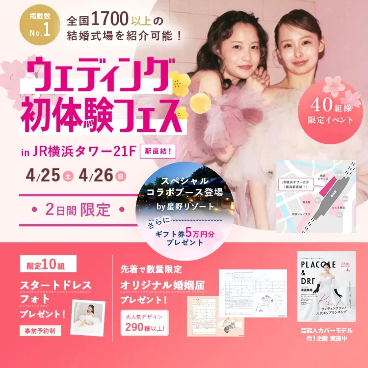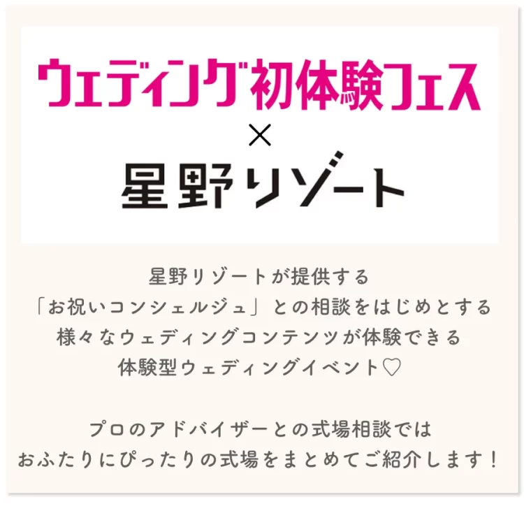 結婚式場相談や、ドレス試着、フォト体験、見積もり相談など、花嫁に必要な情報を一度に得られます。
