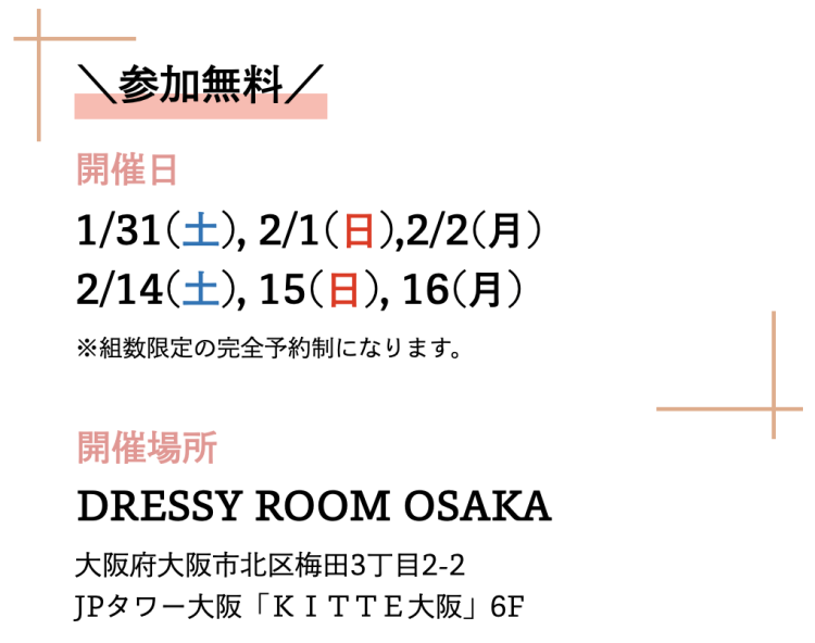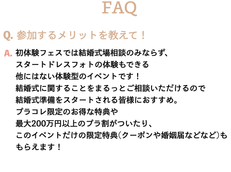 結婚式場相談や、ドレス試着、フォト体験、見積もり相談など、花嫁に必要な情報を一度に得られます。