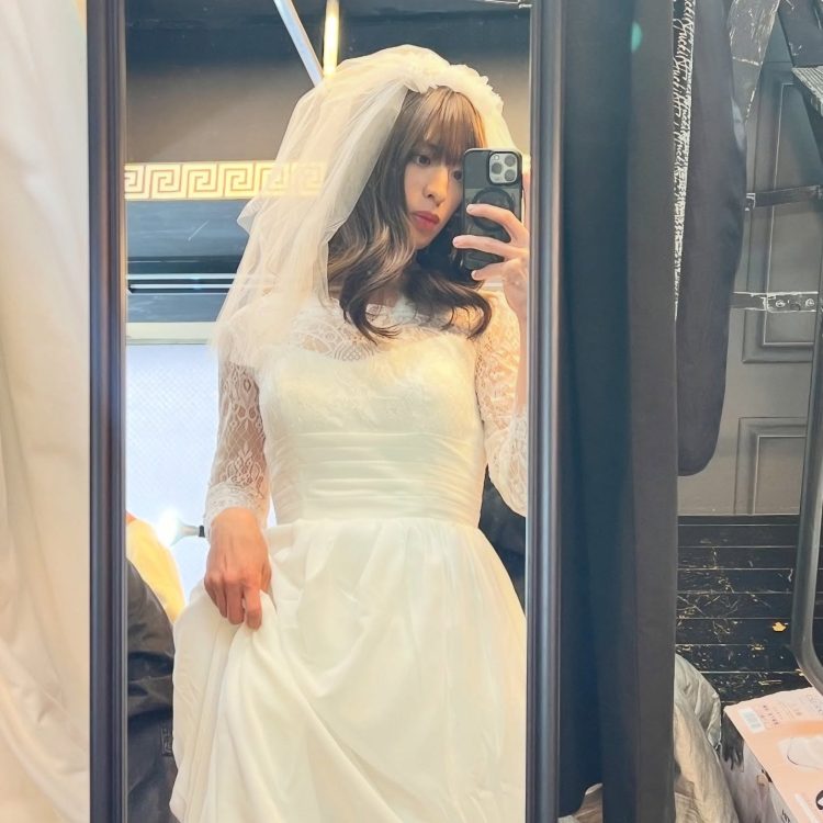 そして2枚目に「ウェディングドレス」姿のオフショットを披露されました!