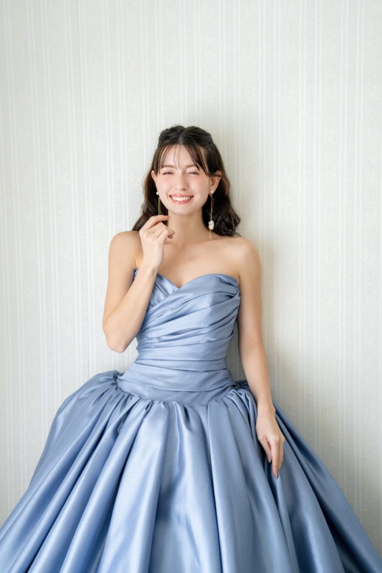 ビスチェ部分は、繊細なタック使いで陰影が生まれ、上半身を美しく魅せるデザインとなっています。