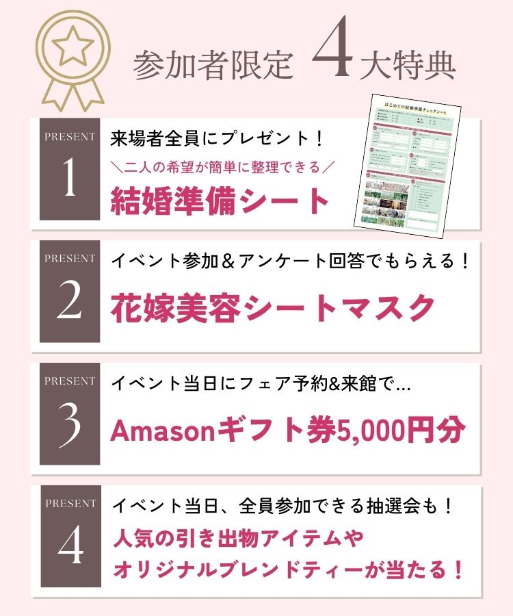 結婚式を検討中のお二人でぜひご参加くださいね◎