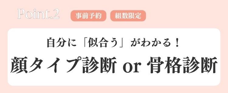 ※顔タイプ診断or骨格診断をご希望の場合は予約時に参加希望欄へのチェックが必要となります(無料・組数限定・当日先着順)