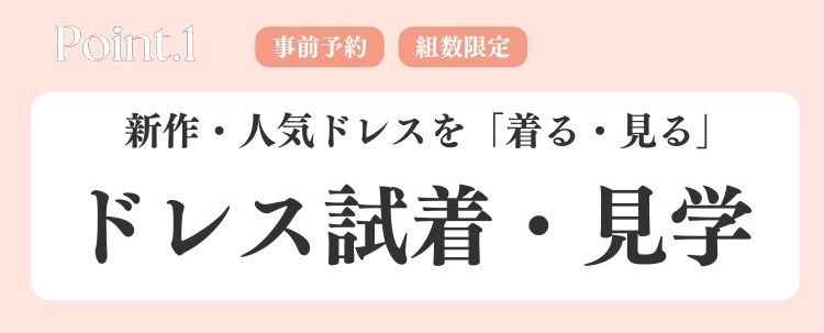 ※ドレス試着体験、ドレス/タキシード見学をご希望の場合は予約時に参加希望欄へのチェックが必要となります(無料・組数限定・当日先着順)