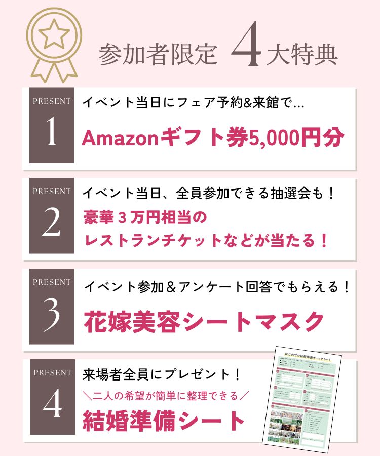 結婚式を検討中のお二人でぜひご参加くださいね!