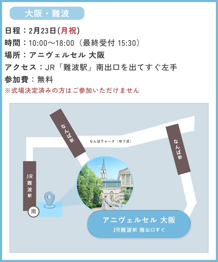 ※ドレス試着体験、ドレス/タキシード見学をご希望の場合は予約時に参加希望欄へのチェックが必要となります(無料・組数限定・当日先着順)