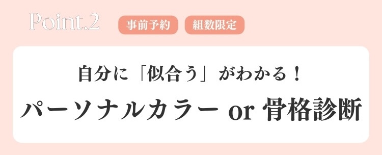 ※パーソナルカラー診断or骨格診断をご希望の場合は予約時に参加希望欄へのチェックが必要となります(無料・組数限定・当日先着順)