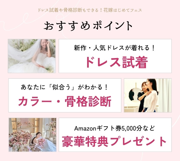 花嫁はじめてフェスのおすすめポイントからご紹介。