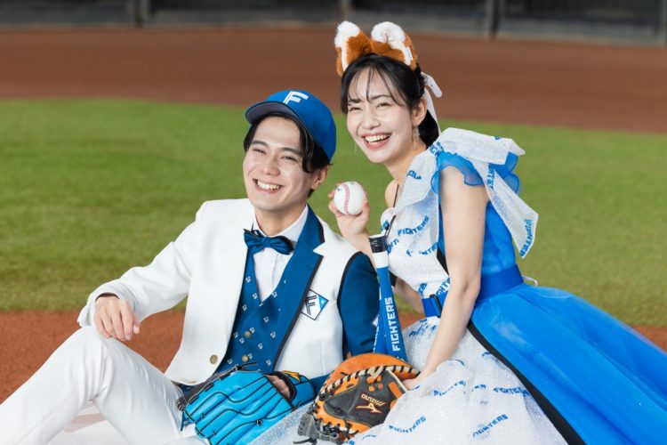 普段は立ち入ることのできないグラウンドにて、ファイターズカラーのドレスやタキシードを身にまとい、記念に残る特別な一枚を撮影することが可能なんです◎