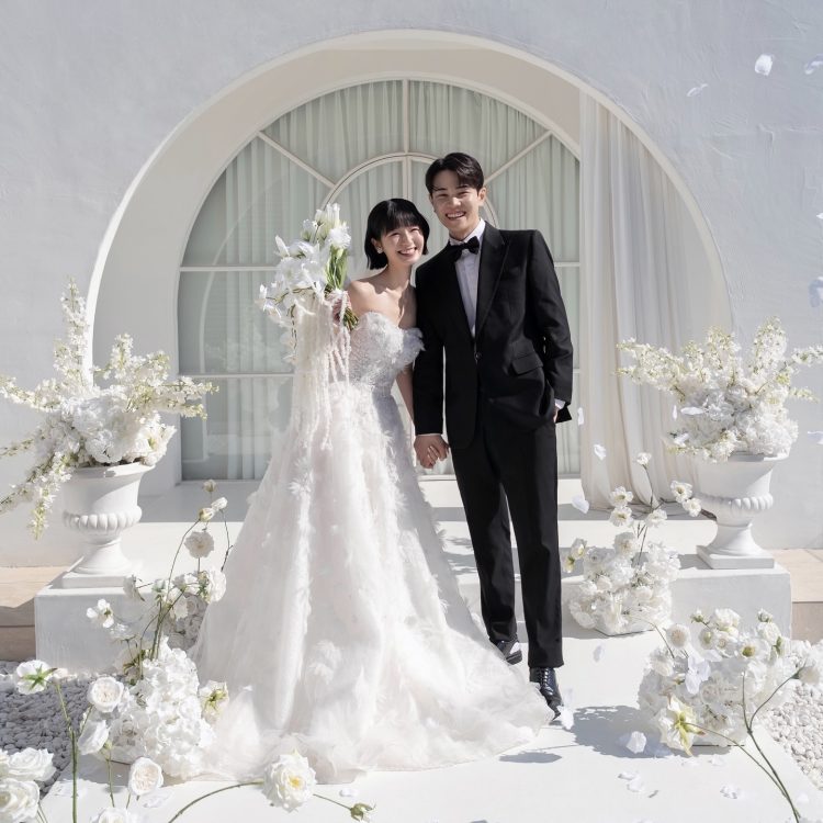 おふたりは、ウェディングドレスとタキシード姿の写真に加え、韓国風の洗練されたウェディングフォトも同時に公開。