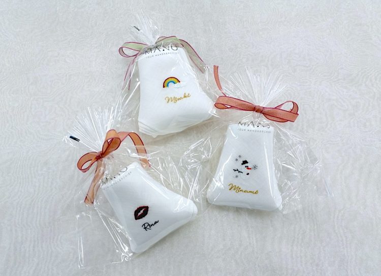 可愛い刺繍が施されたハンカチはプレゼントにもなり、