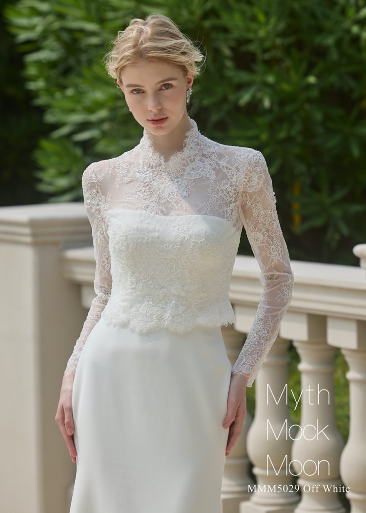 繊細な総レースのロングスリーブブラウスは、衿フロントをあえて下げることで、ハイネックでありながら首を長く見せスッキリと着こなすことが出来るデザイン。