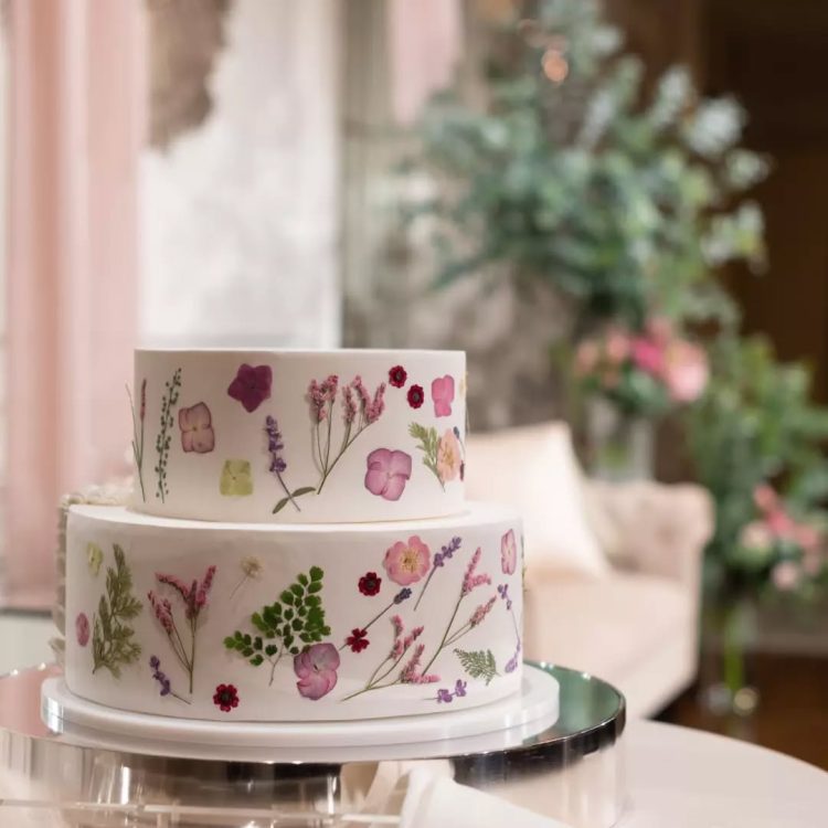 本日は結婚式の準備を進める上で、必ず話題になる!ウェディングケーキのデザインについてご紹介します。今回みなさまにご紹介するのは、押し花を使ったトレンド感満載のおしゃれなウェディングケーキ。