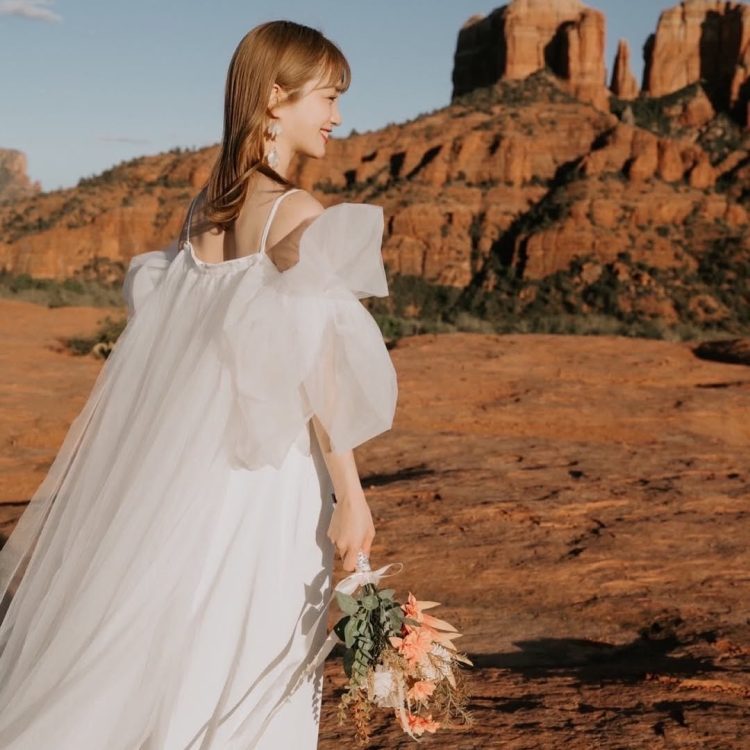 Instagramではセドナで撮影した幻想的なウェディングフォトも公開し、ファンからは「幸せそう!」「おめでとうございます」と祝福のコメントが寄せられています。