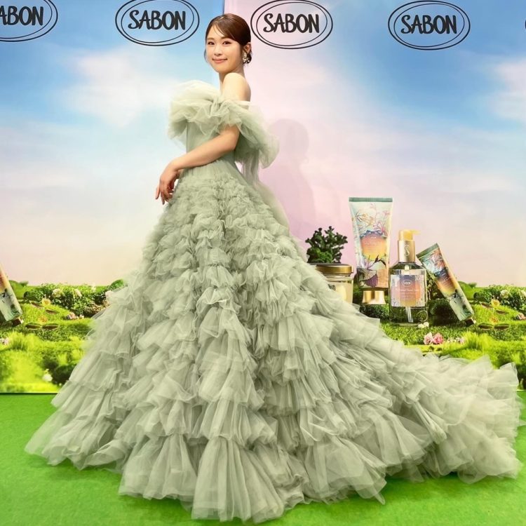 このイベントでは、グリーンのチュールが印象的なカラードレス姿を披露しました♡