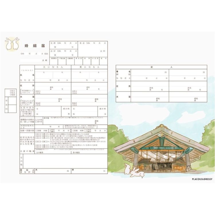 提出する用だけでなく同じデザインで、記入例用紙や保管用がついていることもあるので、単なる提出物というだけでなく、夫婦の大切な思い出の品としても手元に置いておけるんです。