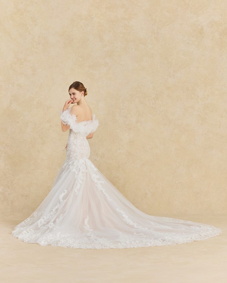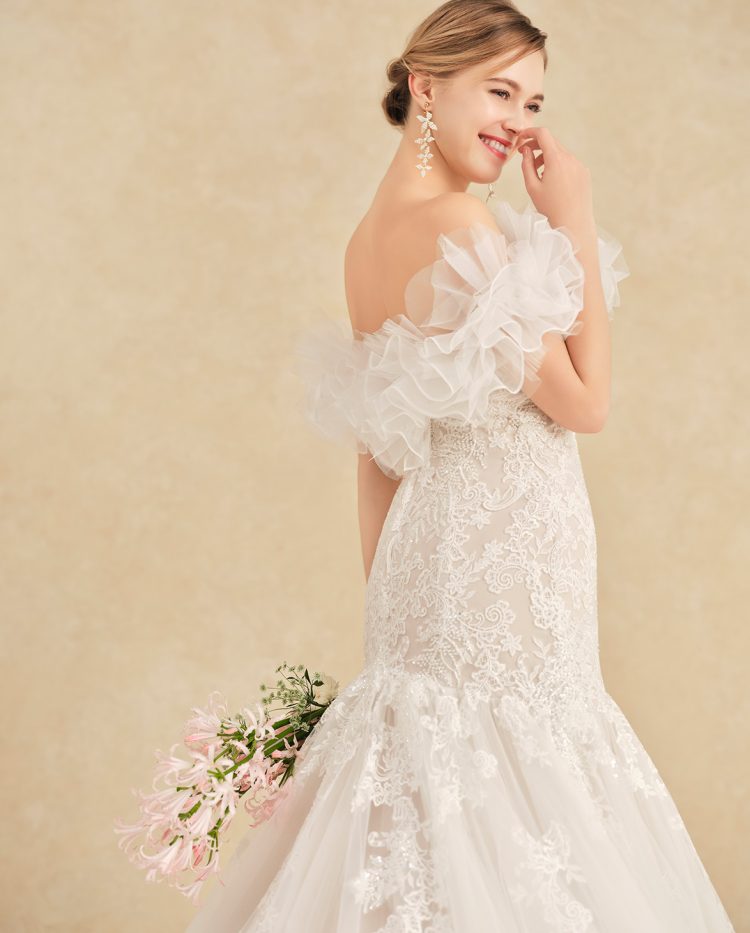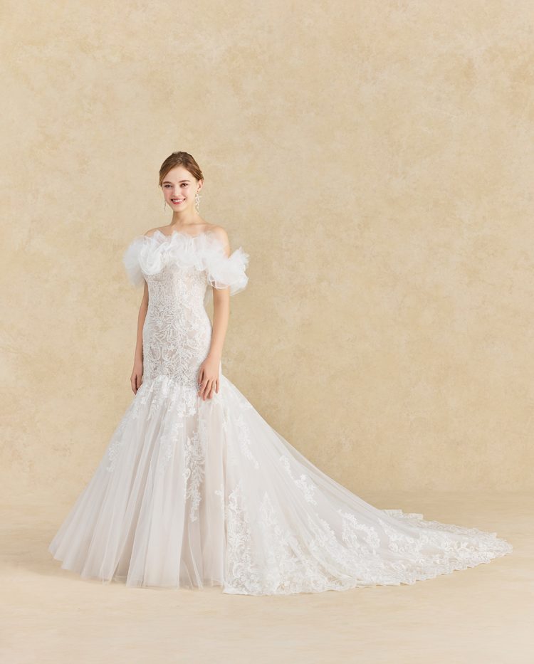 優雅さとモダンな美しさを兼ね備えた、マーメイドドレス。