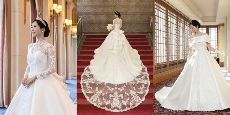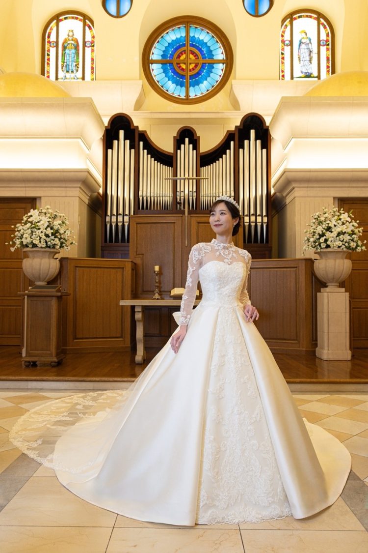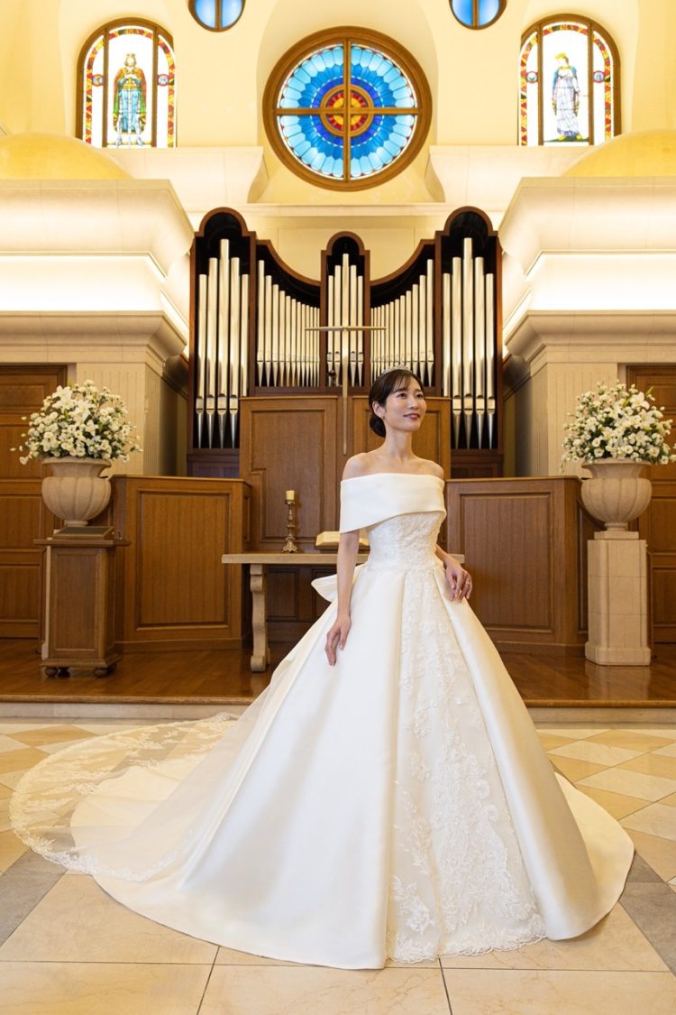 その優雅なデザインは、花嫁様の個性と内面からあふれる美しさをより一層引き立て、至福の輝きを放ちます。