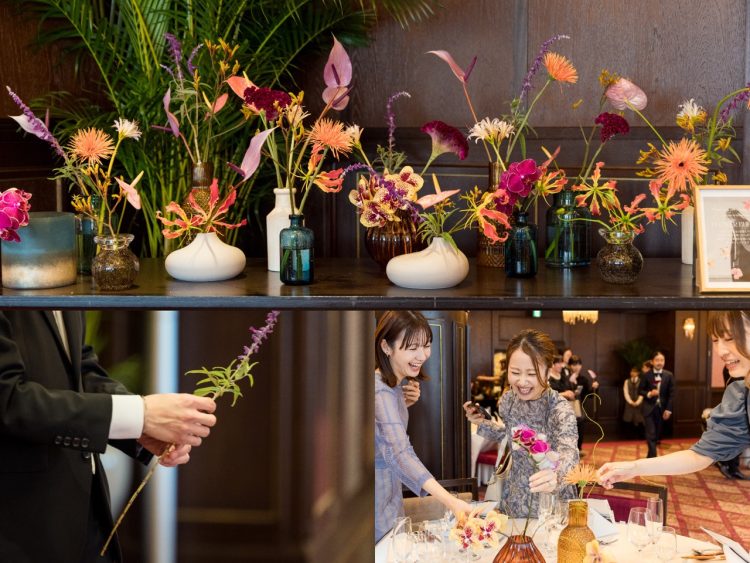 テーブルのフラワーコーディネートを