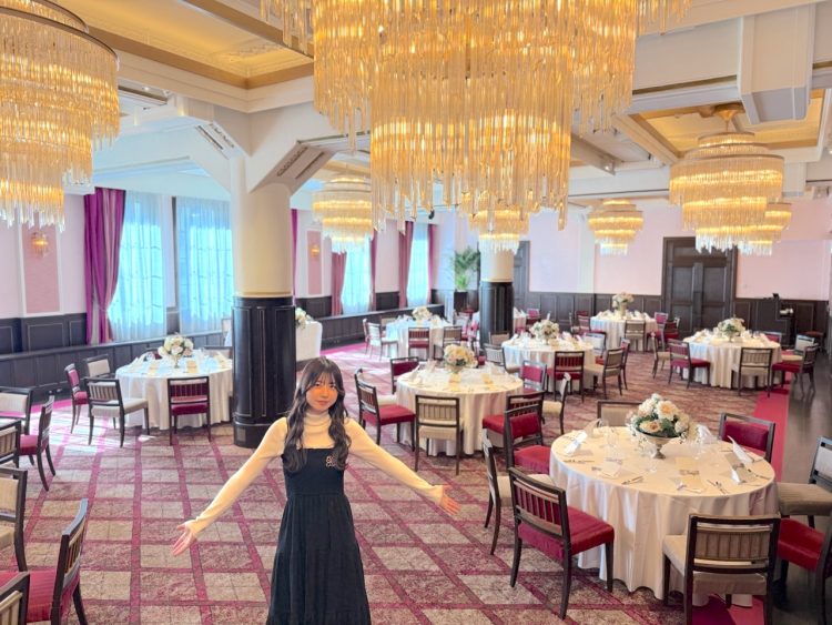天井高15mの壮麗な吹き抜けの大広間。