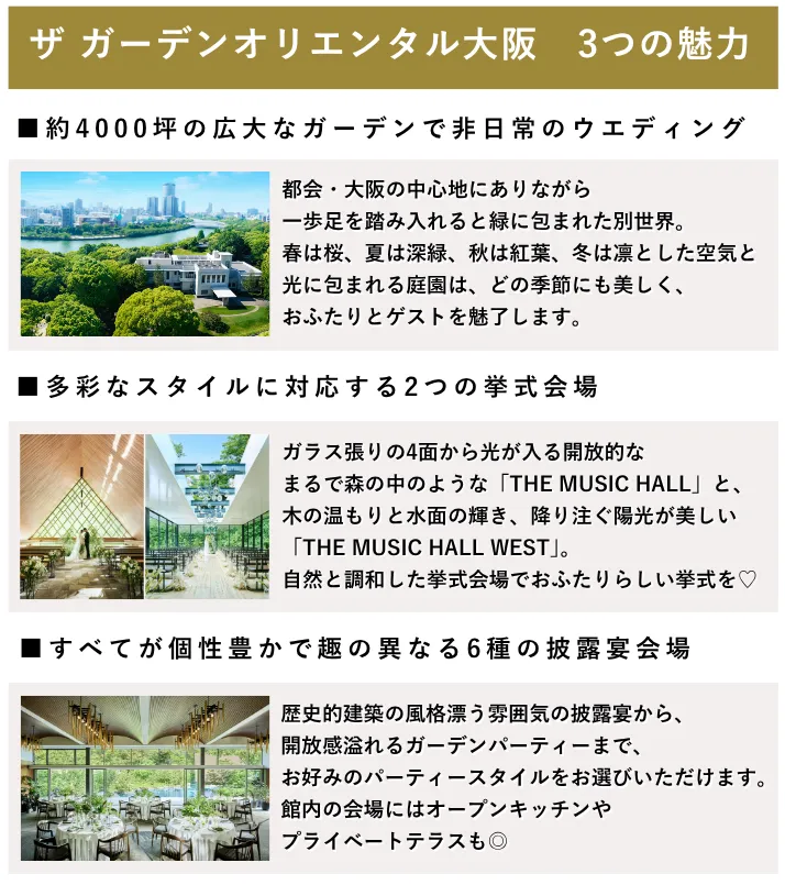 - 「ザ ガーデンオリエンタル大阪」さん3つの魅力