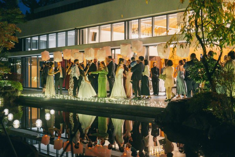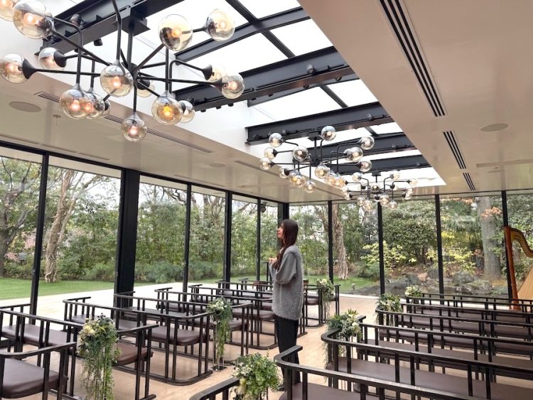 【設備】ブライズルーム/クローク/親族控え室/ゲスト更衣室/カフェ・ラウンジ/写真室/シャンデリア/ガゼボ/日本庭園/ベビーベッド/茶室